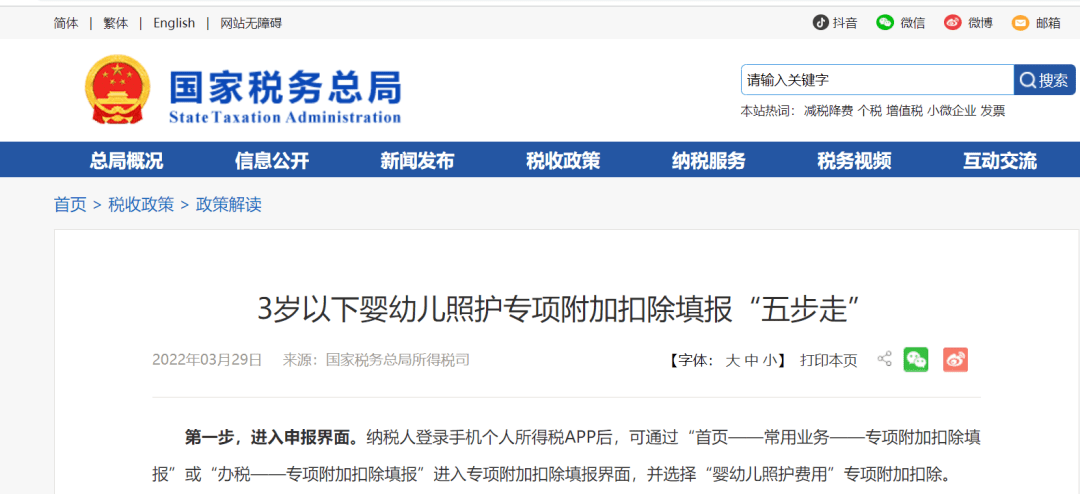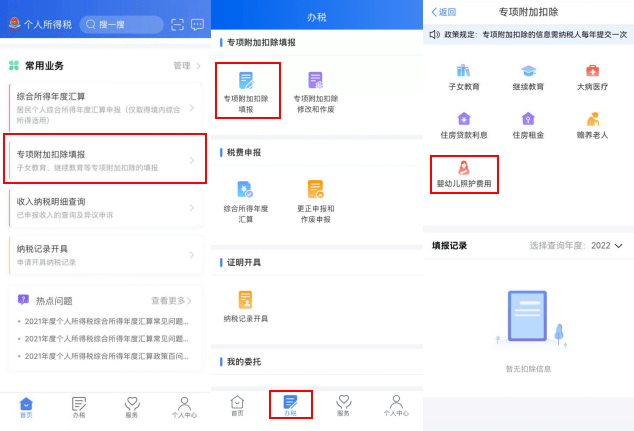 需要說明的是,由于新政策自2022年1月1日起施行,納稅人不能在2021及以前年度匯算中申報3歲以下嬰幼兒照護專項附加扣除。
