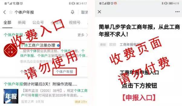 注意:年報無需繳納任何費用!!!企業、農民專業合作社、個體工商戶、在華經營外國企業、外國企業常駐代表機構報送年度報告,無需繳納任何費用。