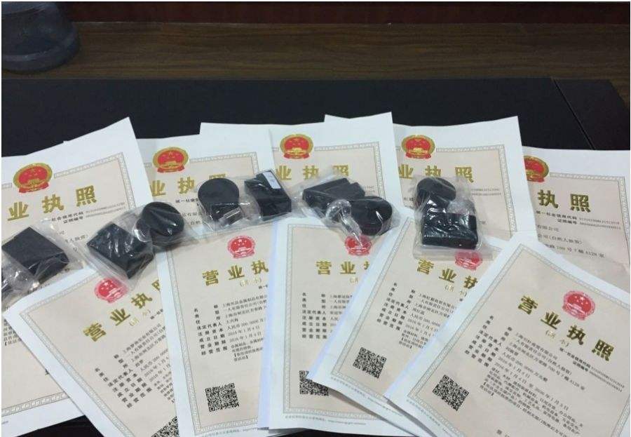 第四步:刻章、拿到營業執照后,需要攜帶營業執照原件、法定代表人身份證原件,到指定部門進行刻章備案。法定代表人不能親自到場領取的,還需攜帶一份由法人親自簽字或蓋章的“刻章委托書”前往領取。領取到的公司印章包括:公章、財務章、合同章、發票章、法人代表人名章。