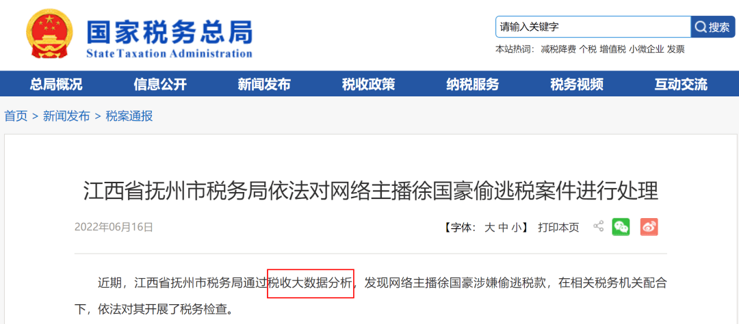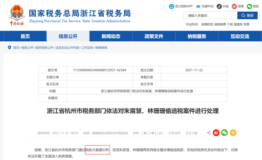 從稅務局近期曝光的知名主播、娛樂明星偷逃稅案件來看,無一例外,都是經過經稅收大數據分析,發現網絡主播或娛樂明星涉嫌偷逃稅款,隨后,稅務機關對其進行全面深入的稅務檢查。