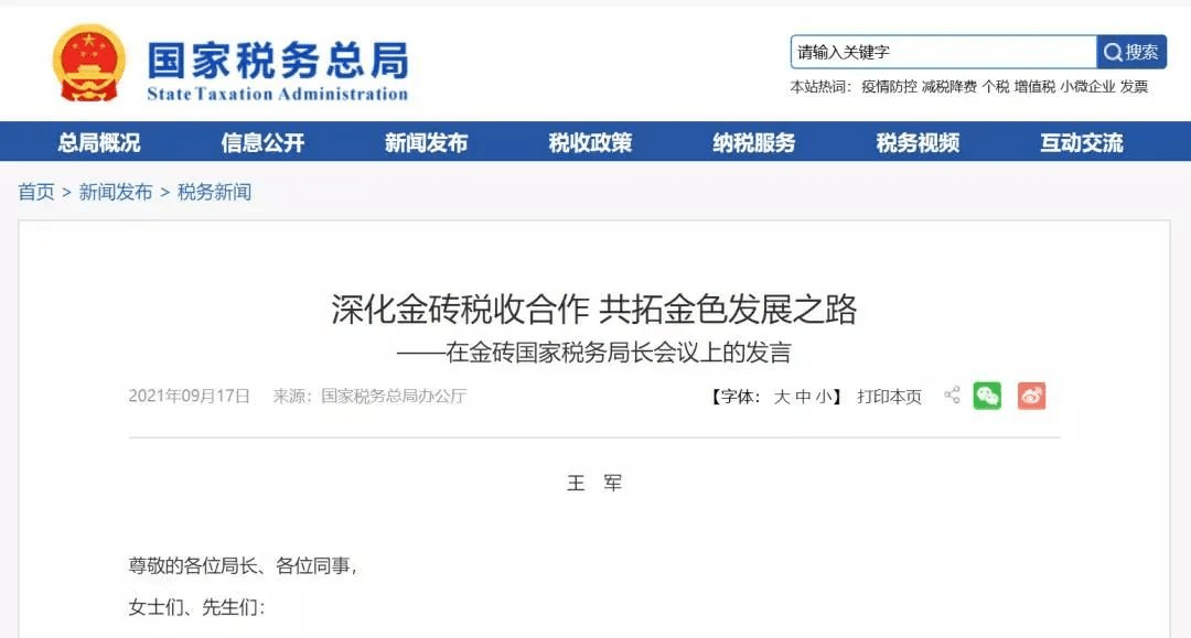 在金磚國家稅務(wù)局長視頻會議中,國家稅務(wù)局長王軍在會議上發(fā)言:我國正向“以數(shù)治稅”時期邁進,稅務(wù)工作將進入一個新的時代,金稅工程四期建設(shè)已正式啟動實施!